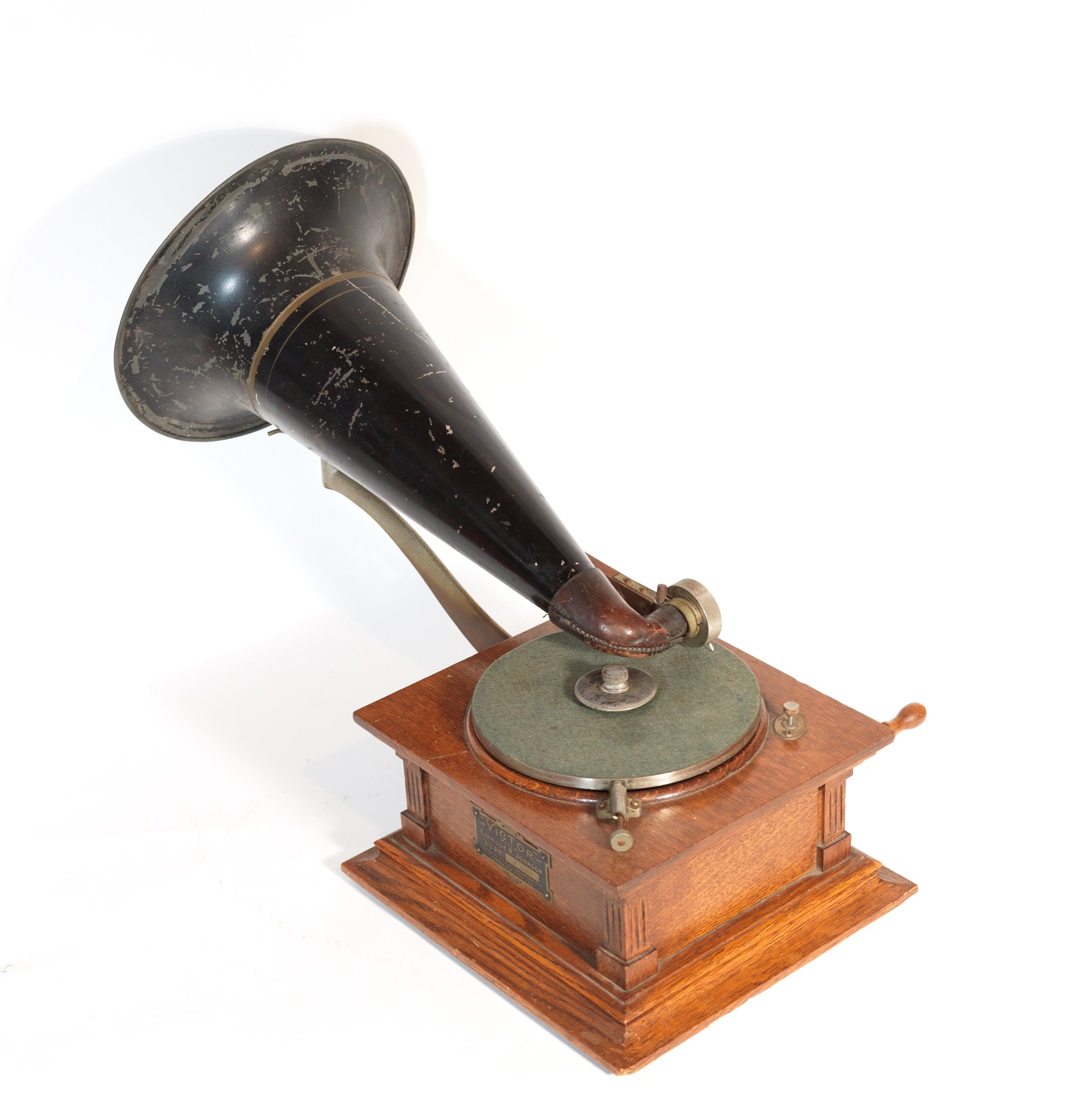This fine example of a Johnson Type C is complete and working, with no replica parts. It comes with its original zinc bell horn and its original Eldridge R. Johnson Concert Sound Box.