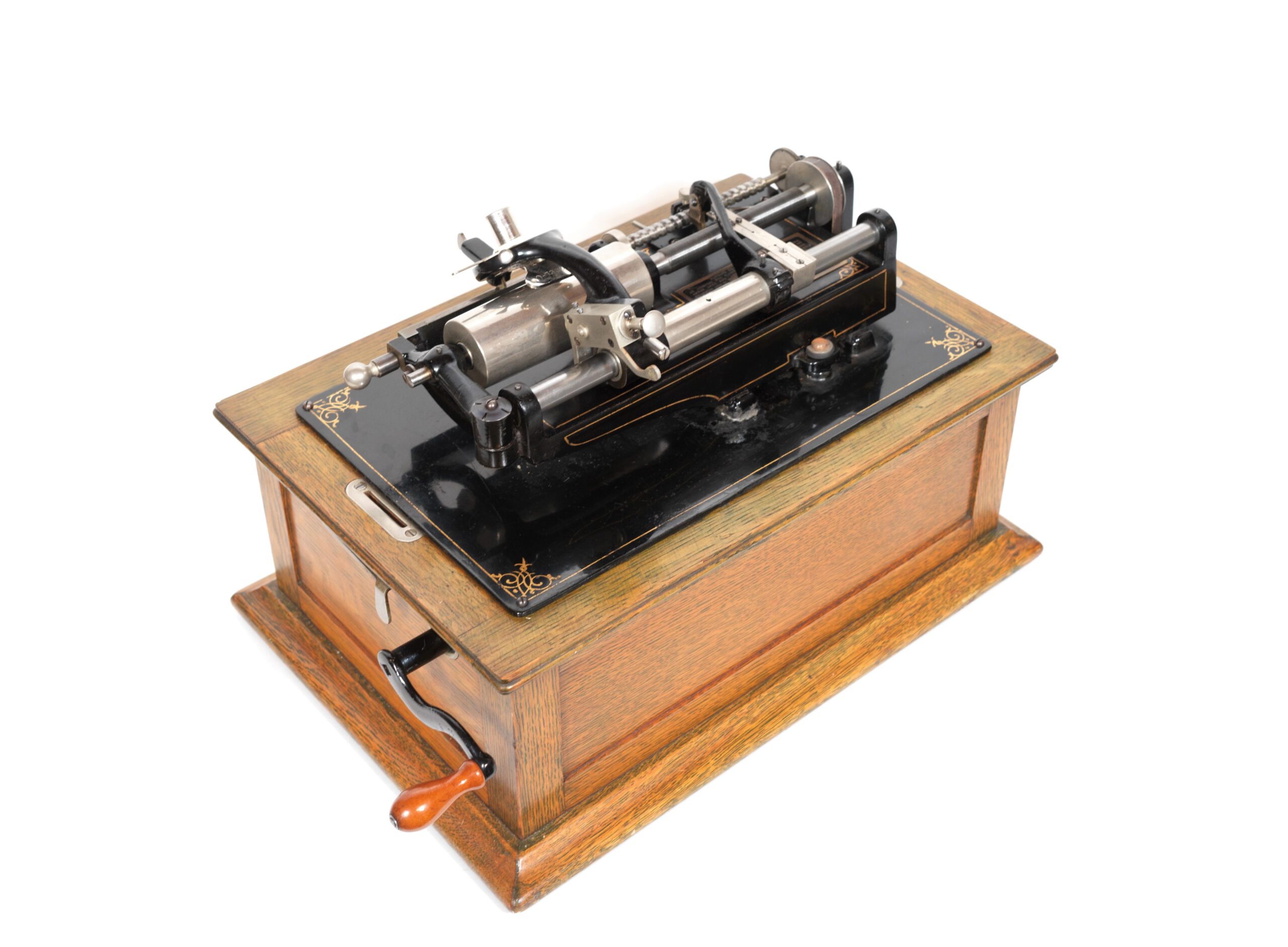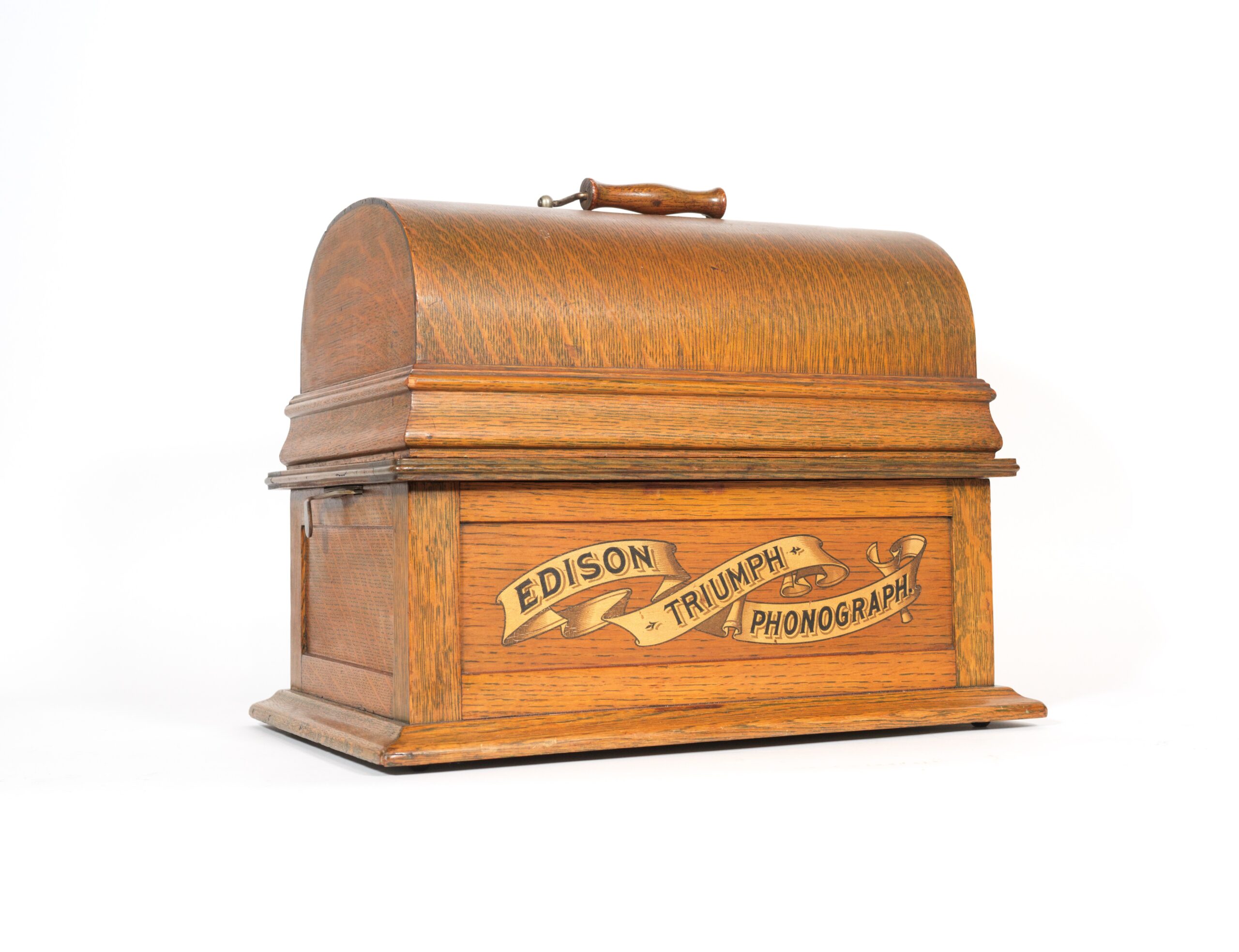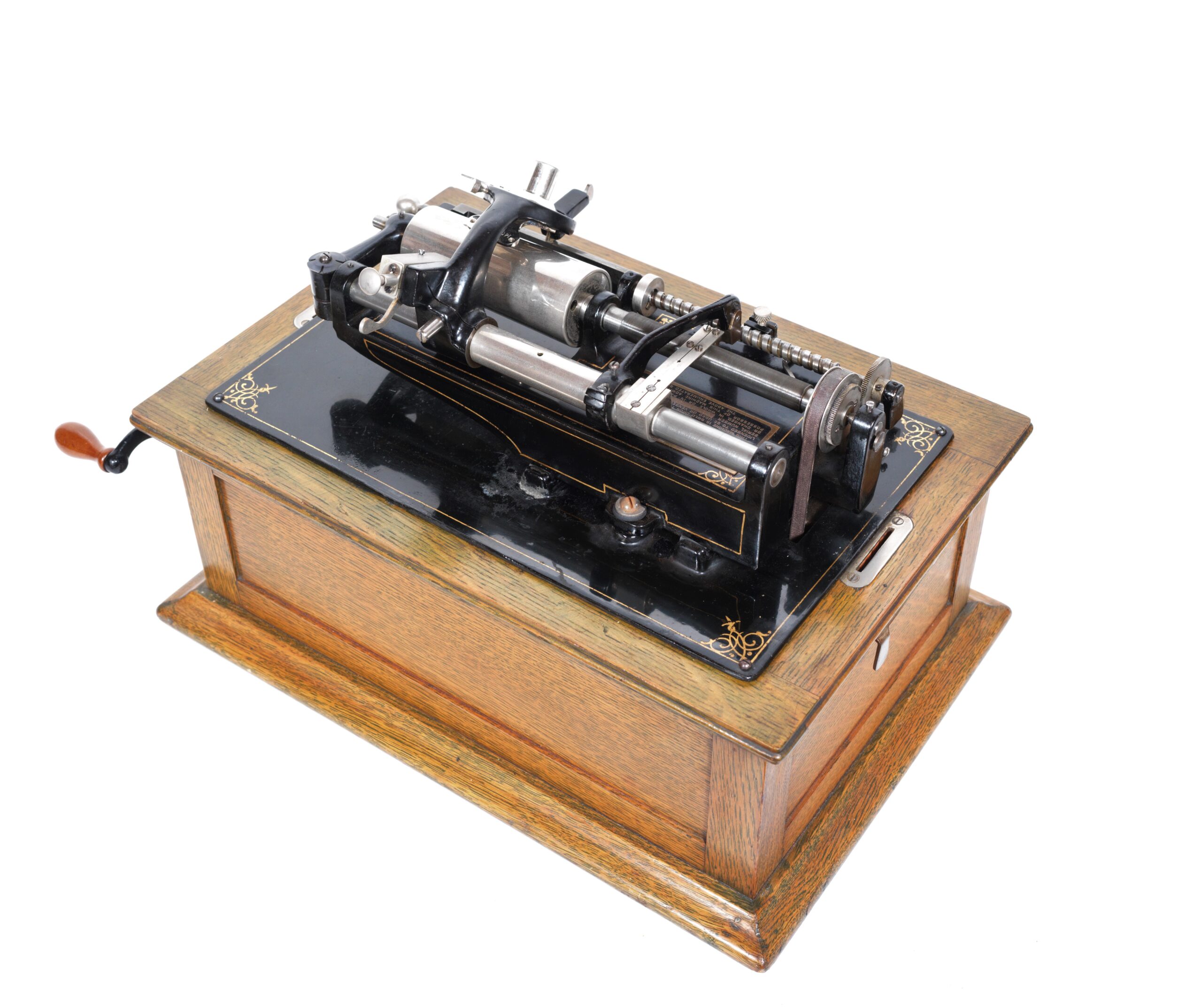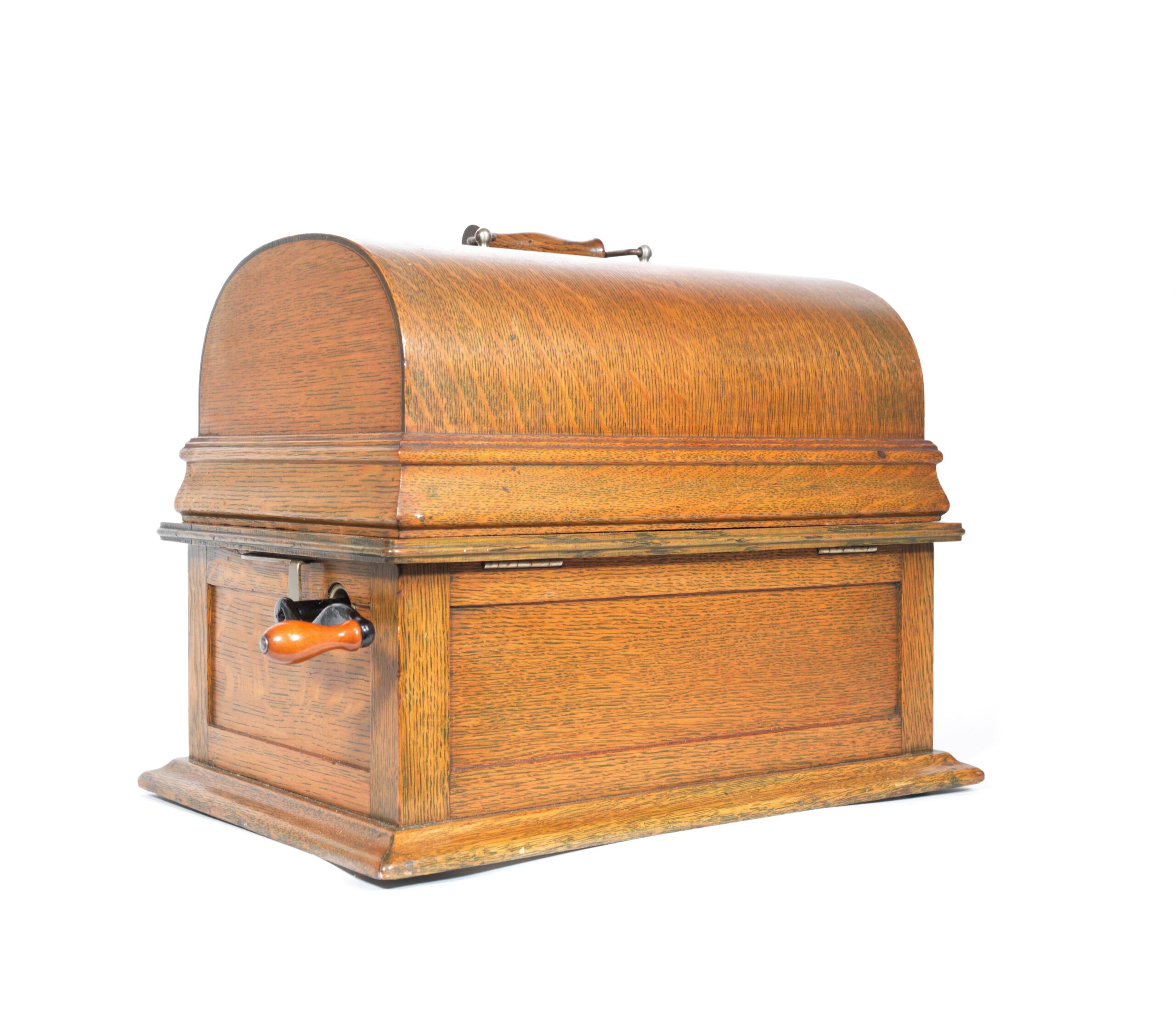 If Rube Goldberg had created a phonograph repeater, it would have looked and operated just like the J Repeater on this magnificent “long case” Edison Home.