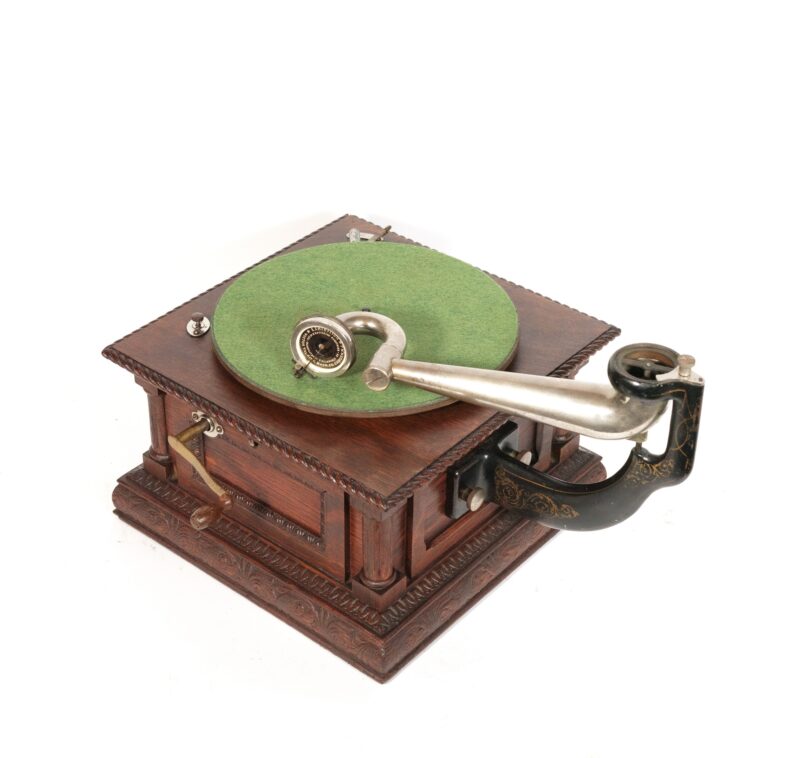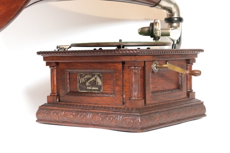 Introduced by Victor in 1902, the Monarch Special (MS) was at the time the best phonograph in the Victor line-up. The MS featured a 10″ turntable, a triple spring motor, and an ornate, dark oak cabinet adorned with heavily carved trim.