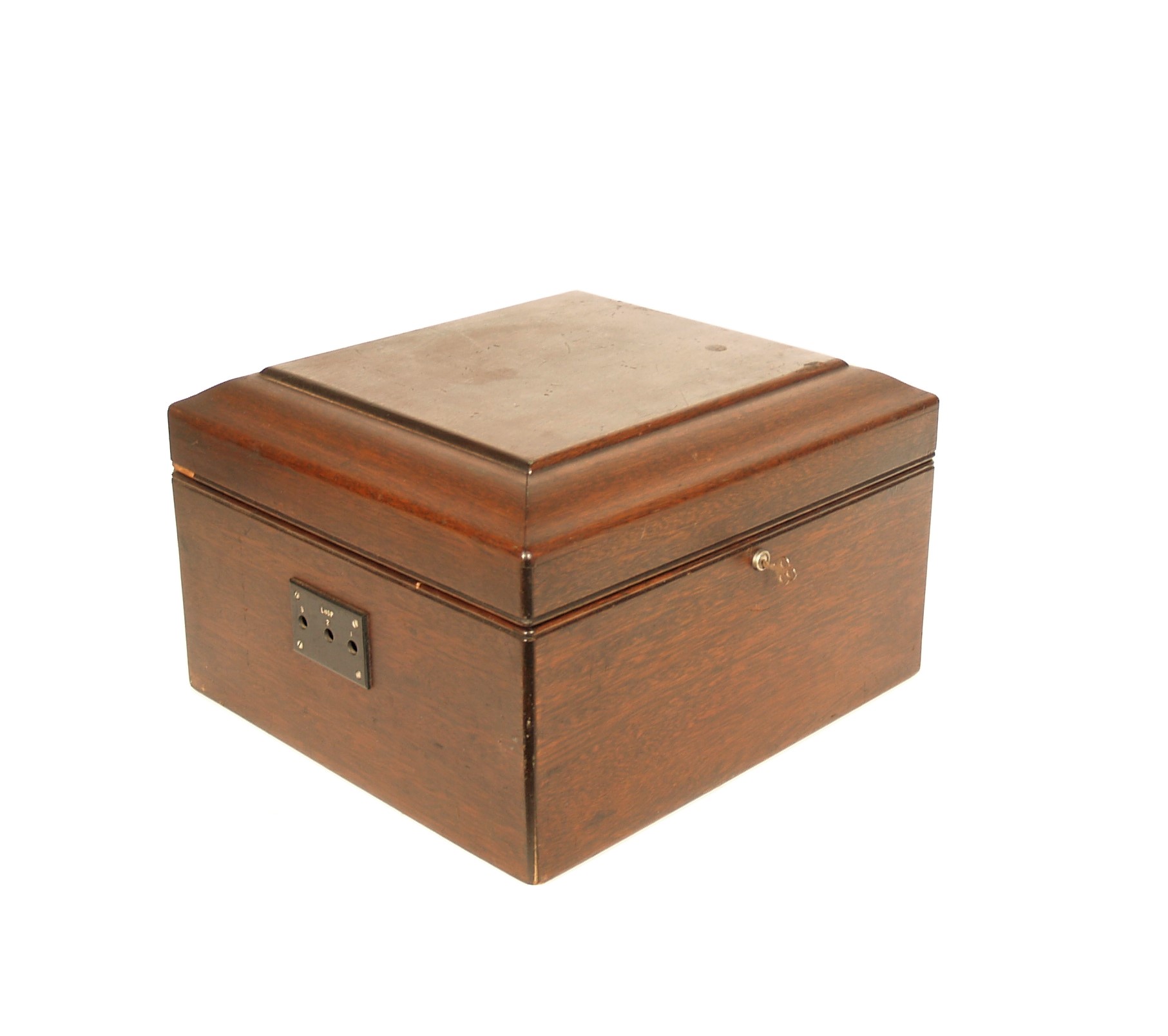 The cabinet finish is original and in good condition, and the original Bristol decal on the underside of the lid is also original, and its condition is close to perfect. The original lock and key are still working.