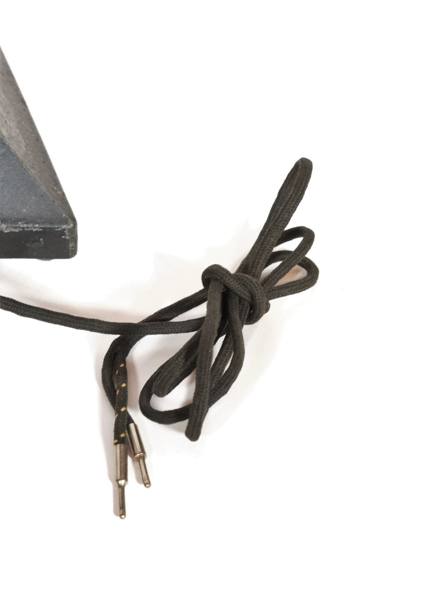 The pot metal collar that protrudes from the top of the base and secures the horn in a bayonet style mount is complete and structurally sound. The speaker’s speckled enamel exterior is original and in good shape. It’s stable on both the horn and the base, with minimal deterioration. The driver cord is likewise in good shape, with metal tips that are still firmly planted in the fabric sheathing.