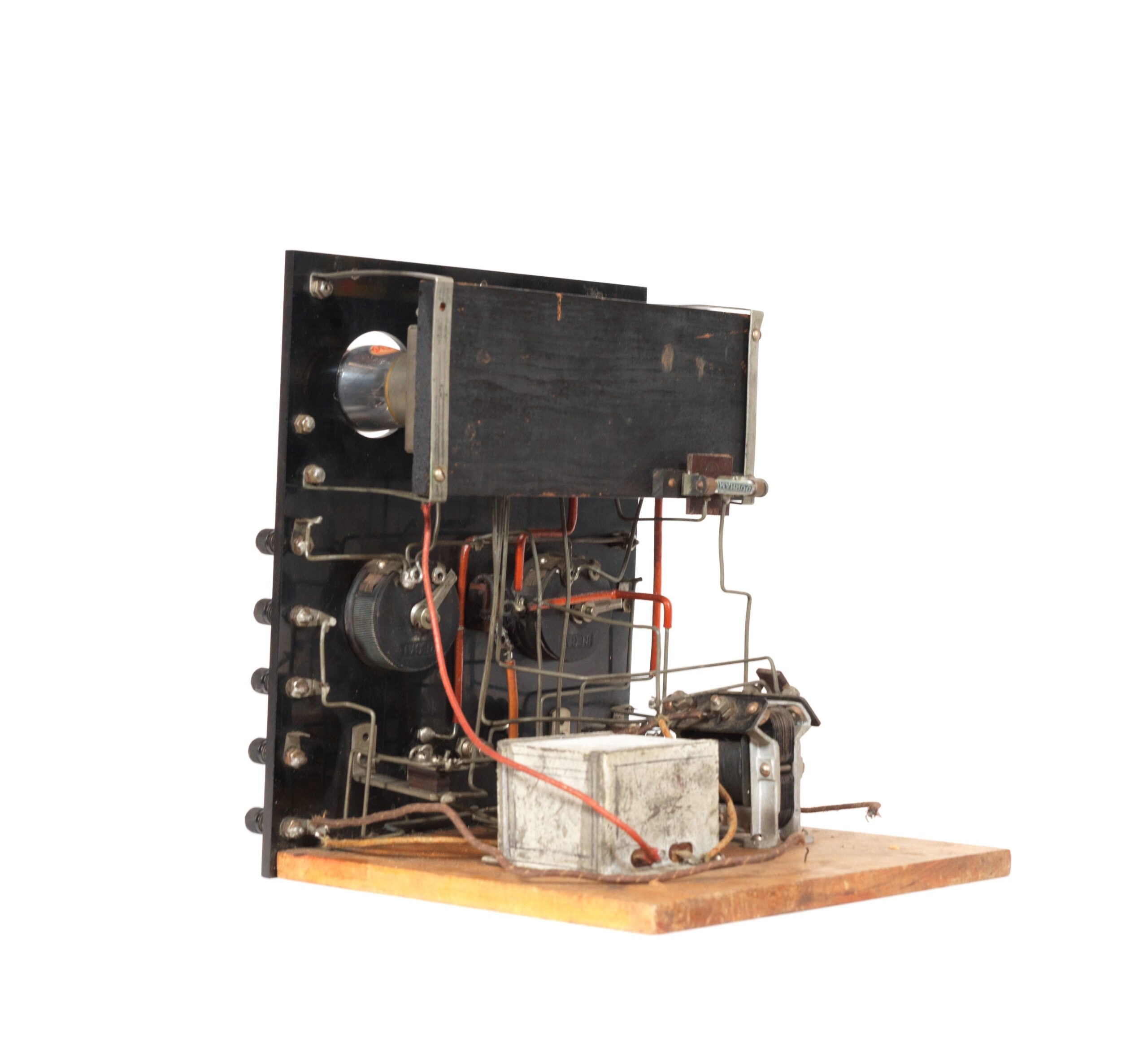 Both chassis are in excellent condition. Original tubes sockets, with no damage. Both original audio transformers test good. Good tipped UV-200 detector tube and 2 good tipped UV-01A amplifier tubes.