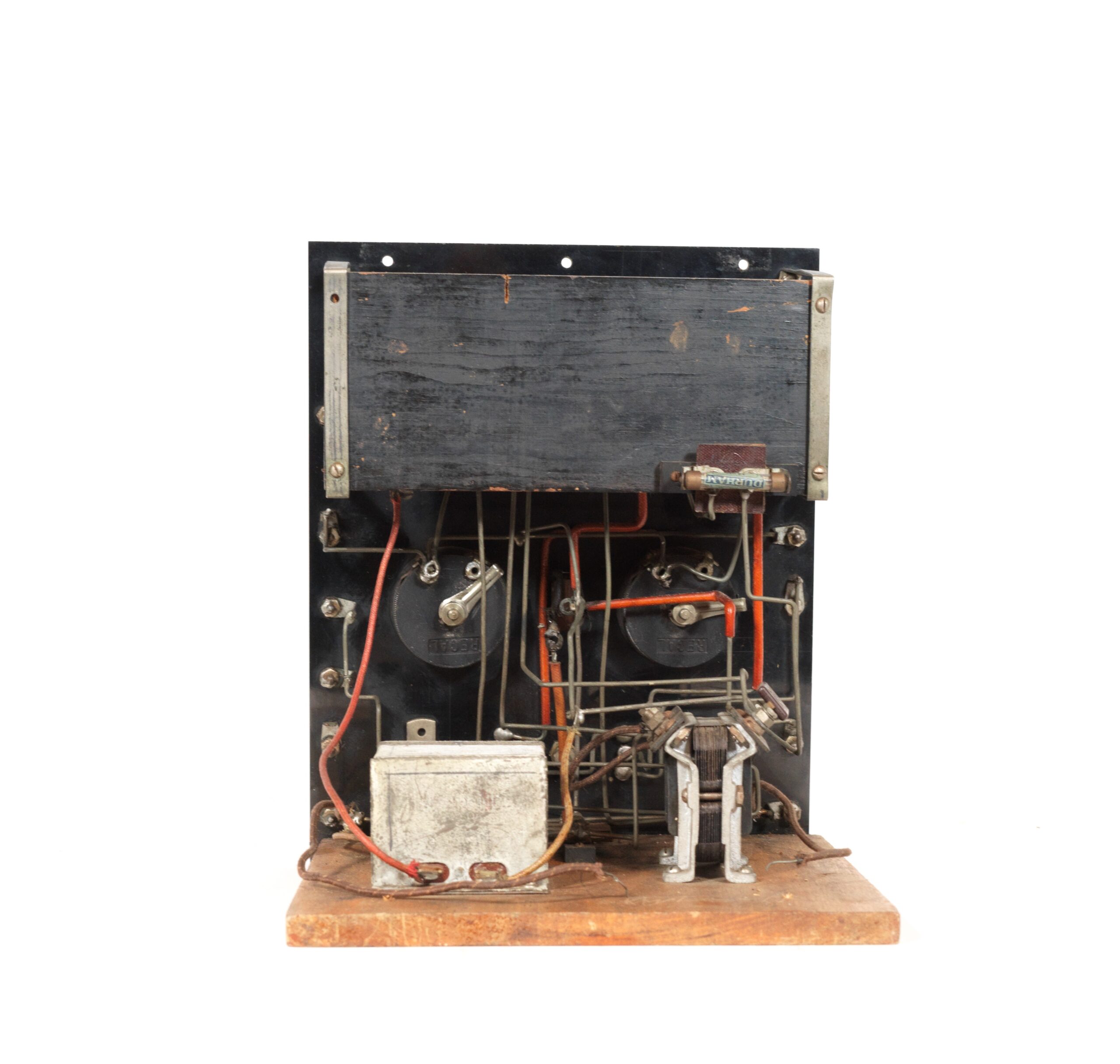 Condition of both the the tuner and the DA is excellent throughout, as you can see in the photographs. The bakelite panels are clean and undamaged, with reflective surfaces. Nickel-plating on the panel hardware is original, and it’s in excellent condition, exhibiting some tarnish but no rust or corrosion. Switches, levers and knobs and binding post assemblies are clean and original. Panel controls are working properly.