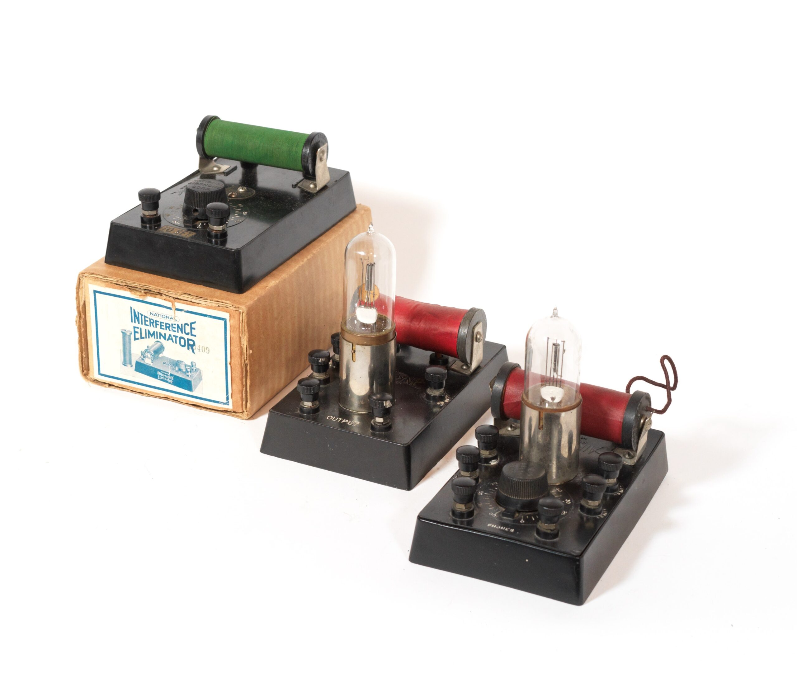 1922 National Airphone GT-1 Monodyne Radio, its rare matching Monodyne Amplifier, and the even scarcer Monodyne Interference Eliminator, which as you can see is mint in its original box.